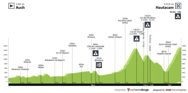 Profile for Stage 12 of the 2025 Tour. Stages ending with a climb are where the biggest time gaps occur.